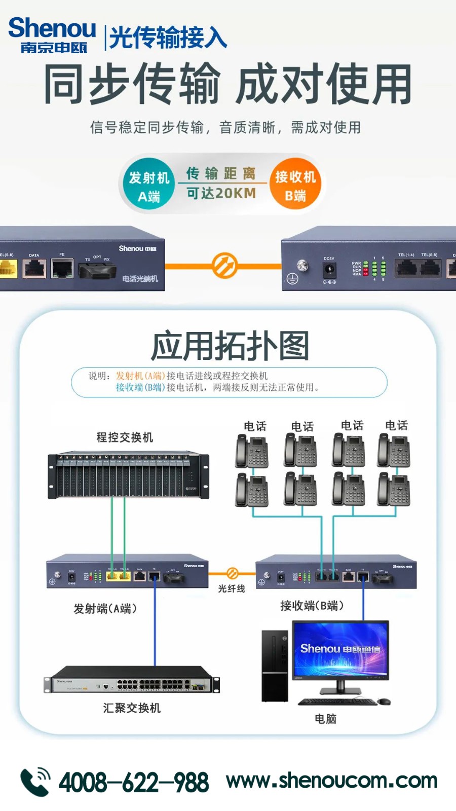 申甌電話光端機——8/32/54/128路