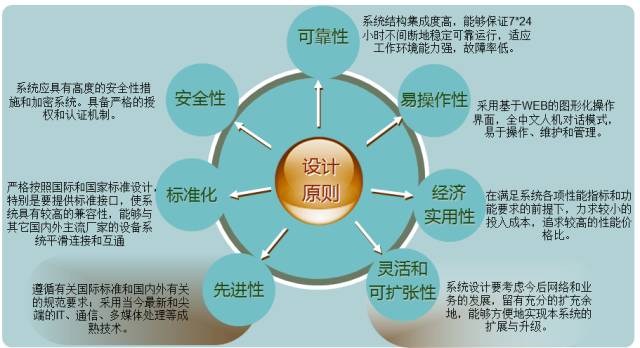 總體設計原則圍繞著“應用集成化、管理透視化、業(yè)務協(xié)同化、流程柔性化”,它保證平臺和系統(tǒng)具有高度的先進性、經(jīng)濟實用性、可擴展性和開放性,采用成熟的技術、工具平臺,同時又要具有一定的向下兼容性,以保護使用單位現(xiàn)有的軟硬件資源投資的長期性。