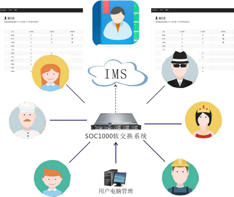 使用配套SIP話機實現(xiàn)企業(yè)內(nèi)部通訊錄共享功能,soc1000軟交換系統(tǒng)企業(yè)通訊錄應(yīng)用模塊可統(tǒng)一導入企業(yè)人員名單聯(lián)系方式,配置成通訊錄方式供下掛SIP話機和手機APP終端使用,并可同步通訊錄名單。
